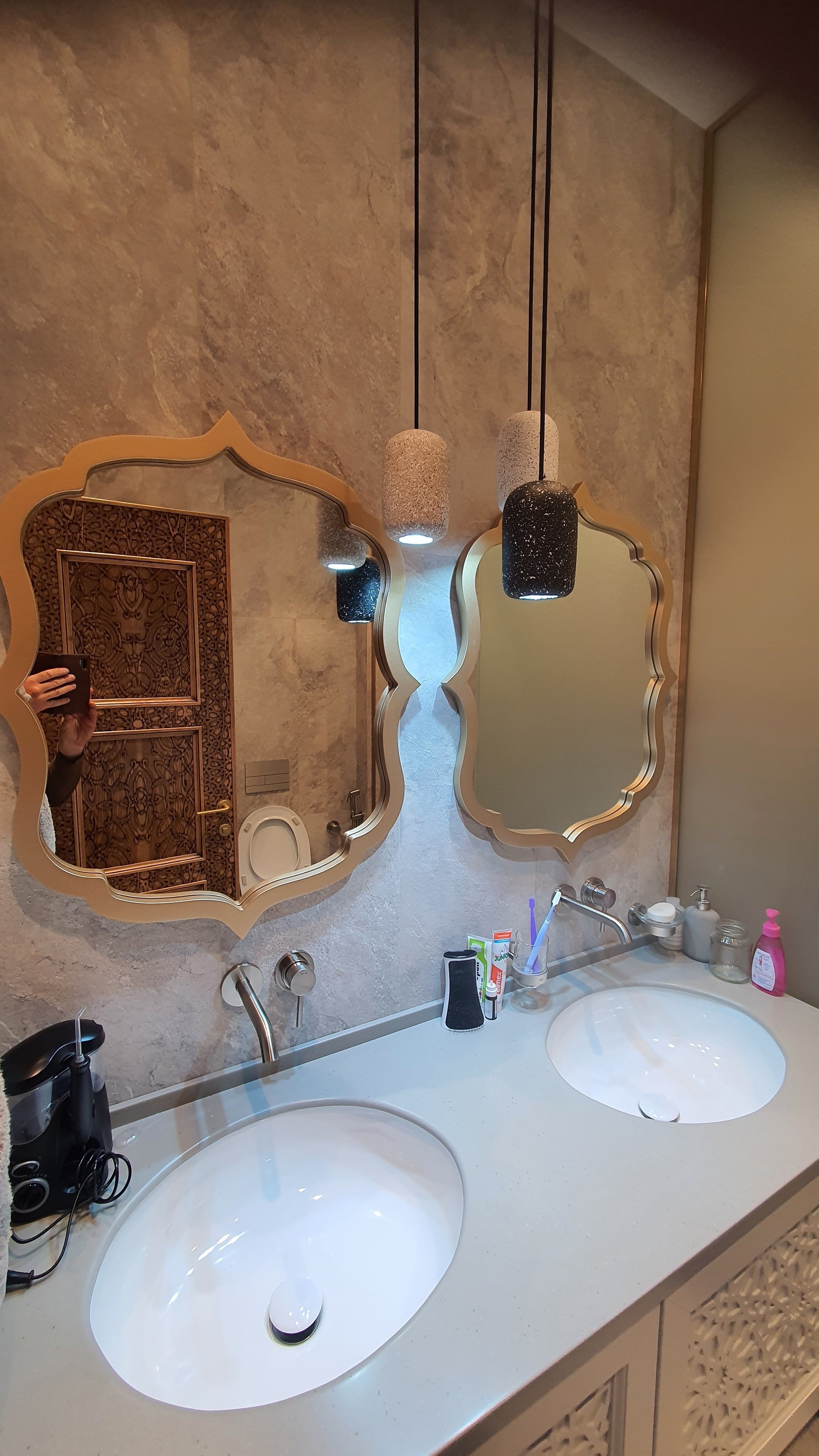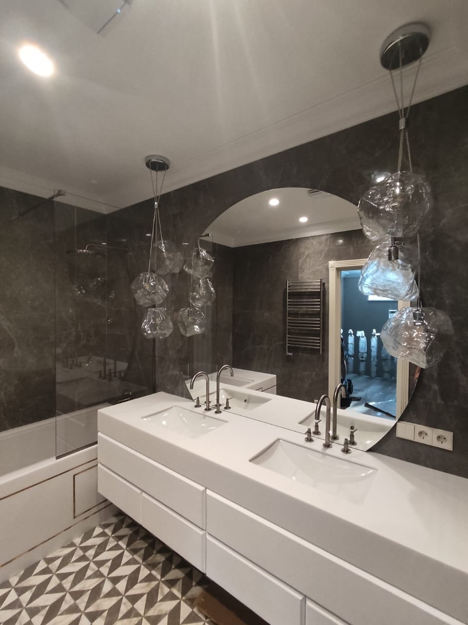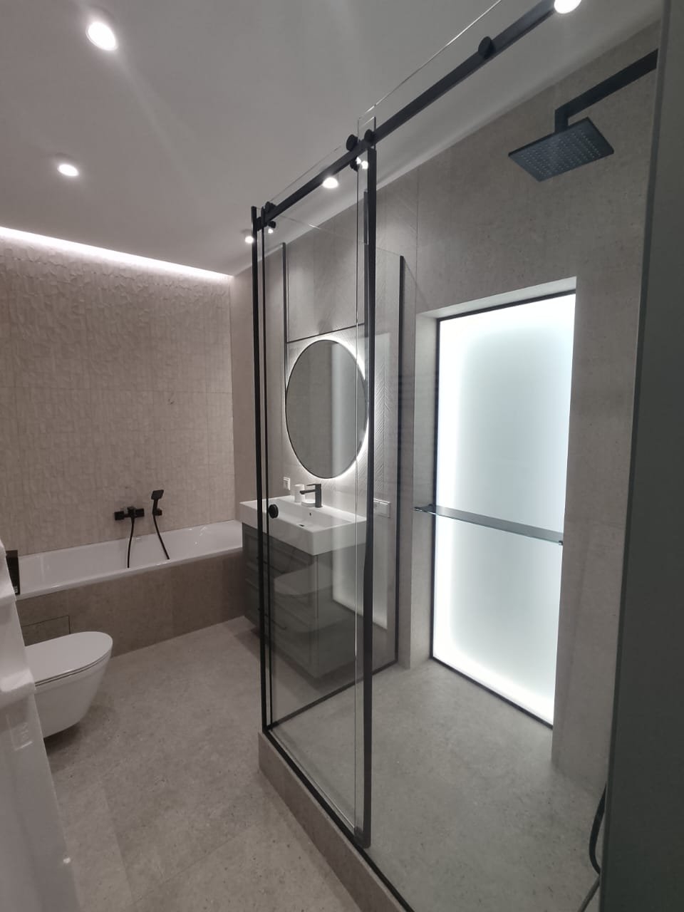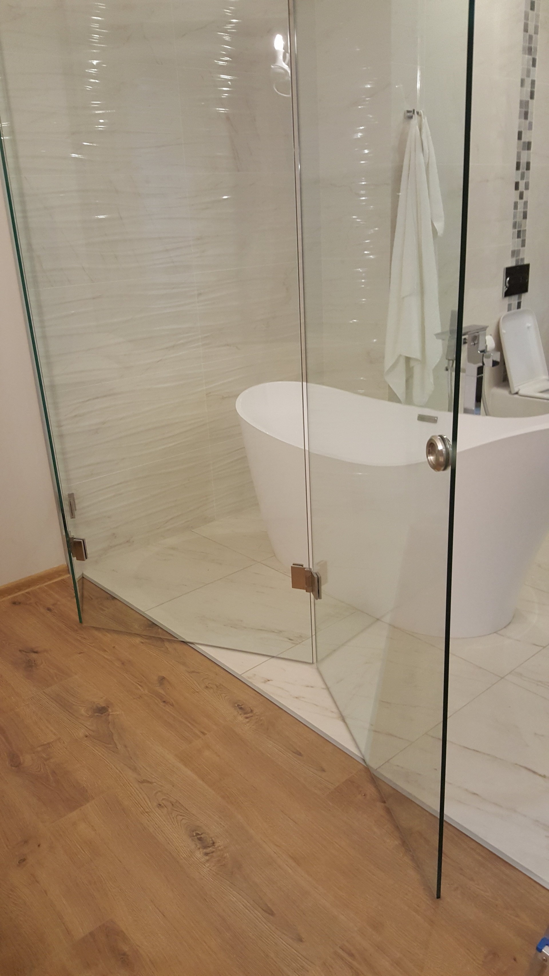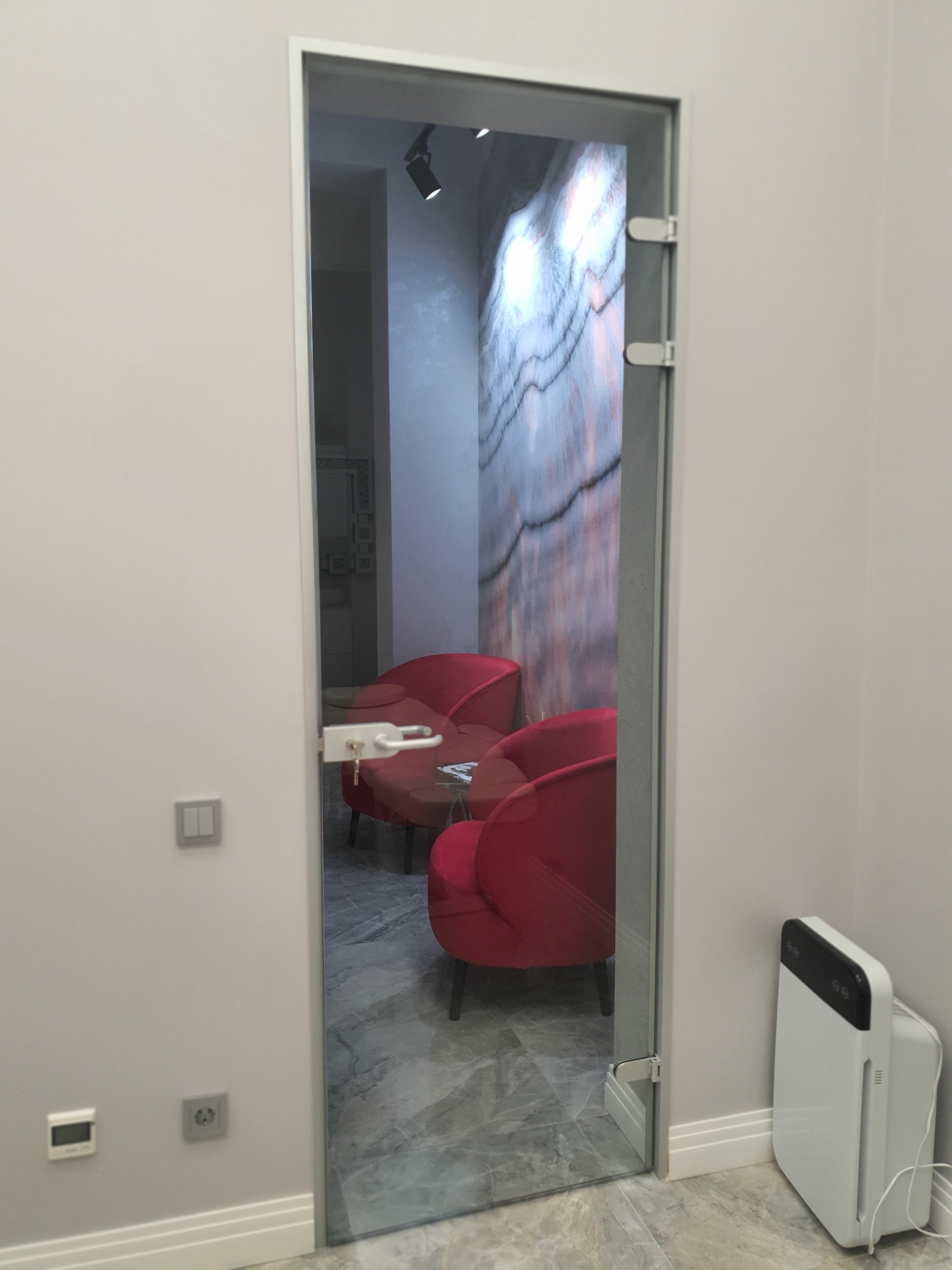 Эффективное зонирование, которое сохраняет свет и визуально расширяет пространство. Надёжные зеркальные перегородки из закалённого стекла для вашего комфорта и стиля.