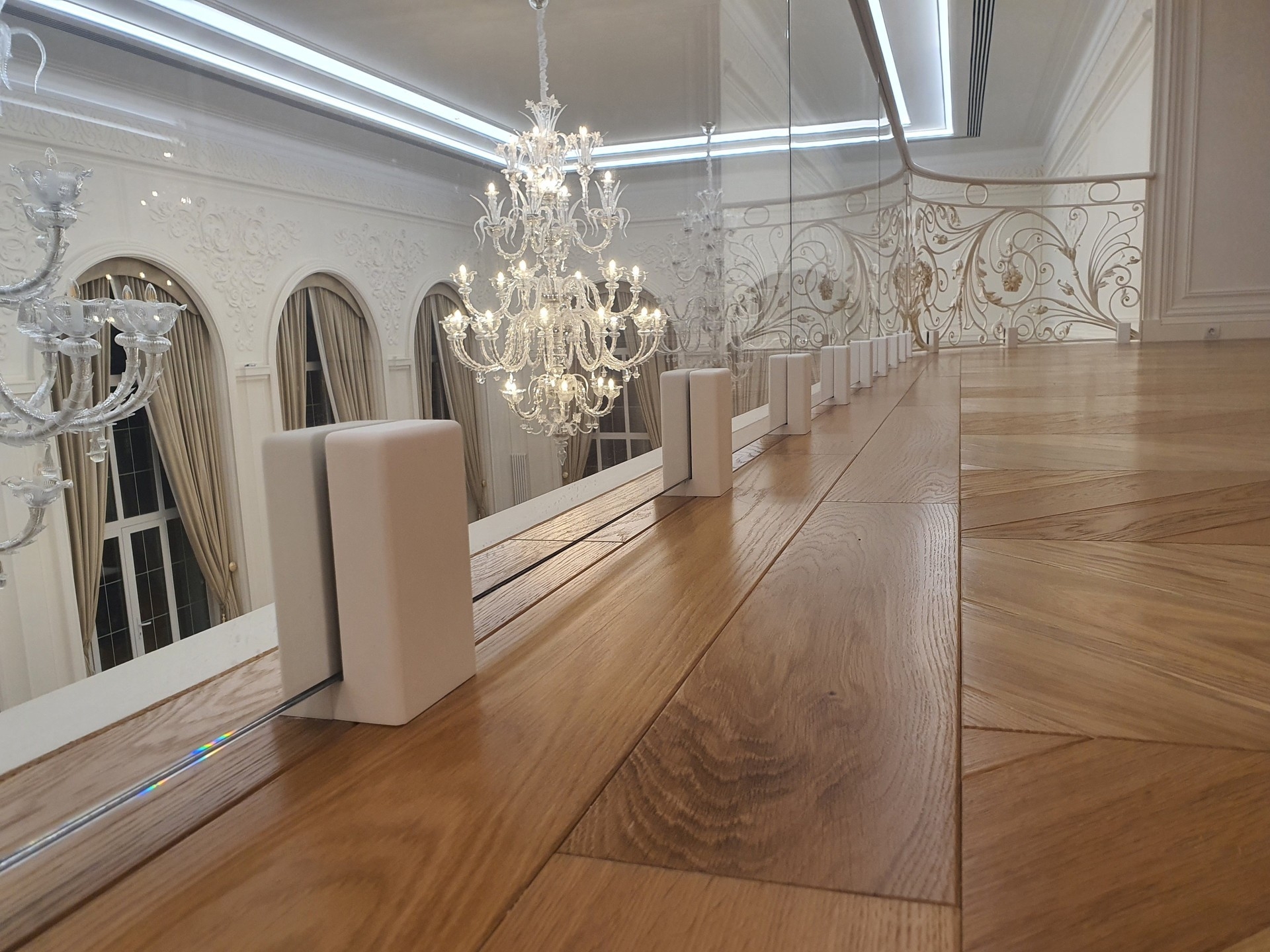 + Эффект глубины и дополнительного освещения + Экстремальная прочность и безопасность + Абсолютная износостойкость + Индивидуальный проект и точный инженерный расчёт + Профессиональная реализация «под ключ»