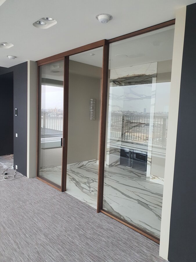 Наши стеклянные раздвижные перегородки — это практичное и элегантное решение для динамичного зонирования пространства. Они позволяют быстро и легко разделить или объединить комнаты, создавая при этом ощущение легкости и сохраняя естественное освещение. Мы изготавливаем конструкции из закаленного стекла, оснащенные бесшумной и надежной фурнитурой премиального качества для плавного и долговечного скольжения. Раздвижные системы могут быть дополнены матированием, пескоструйным рисунком или декоративными элементами, чтобы идеально вписаться в ваш интерьер. Мы работаем в Казани, осуществляя полный комплекс работ от замера и проектирования до установки с гарантией качества. Хотите обсудить проект? Напишите, мы вам поможем!