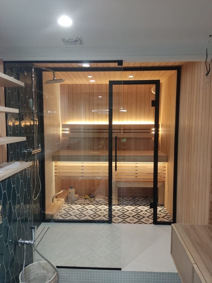 Наши стеклянные конструкции для саун и хаммамов — это сочетание эстетики, безопасности и максимального комфорта. Мы изготавливаем двери, перегородки и обшивку из специального термостойкого закалённого стекла, устойчивого к перепадам температур и высокой влажности. Наши изделия обеспечивают герметичность парилки, визуально расширяют пространство и позволяют контролировать процесс отдыха. Каждый проект включает точный расчёт, индивидуальный дизайн и профессиональный монтаж с использованием термостойкой фурнитуры. Мы работаем в Казани и гарантируем долговечность и безупречный вид наших конструкций даже в экстремальных условиях. Хотите обсудить проект? Напишите, мы вам поможем!